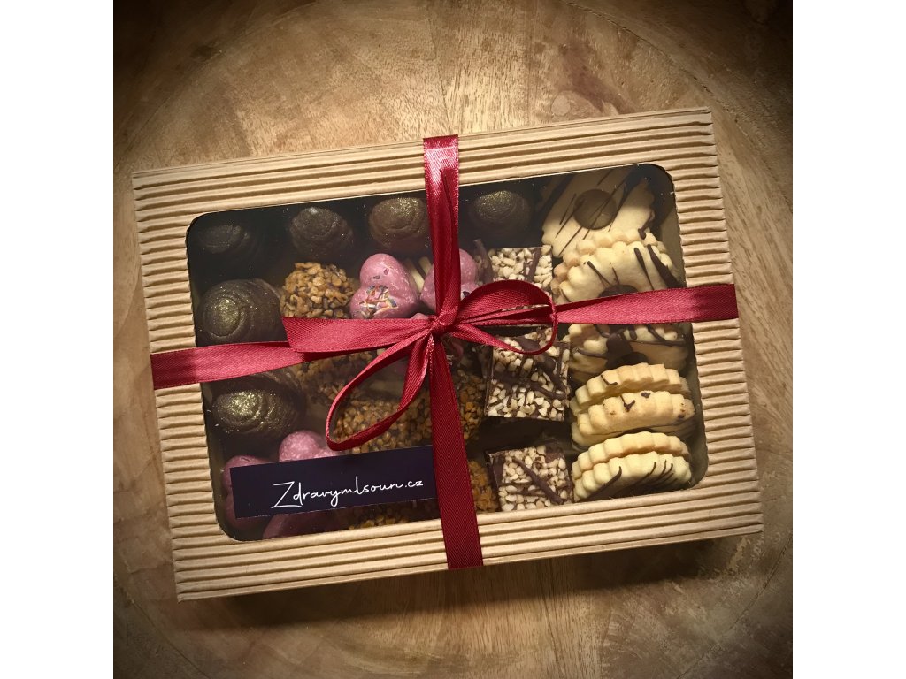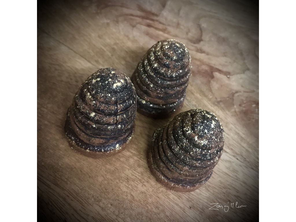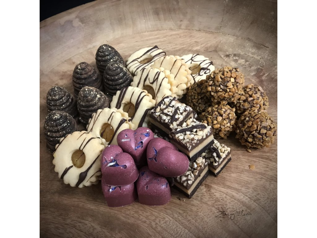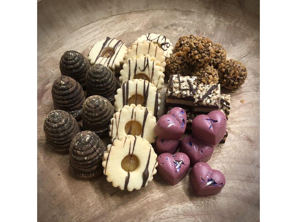 Kolekce bude mít 5 druhů toho nej z naší manufaktury. Vosí hnízda se zlatým třpytem a vaječným likérem, linecké s pomerančovo- maracujovou náplní přelité 70% hořkou čokoládou, mini kuličky slaný karamel, snickers vegan řezy a totální Ruby bomba pralinky s malinovým prachem zdobené chrpou kolekce je Top strop a určitě tahle limitka o 550g bude stát za to !!!