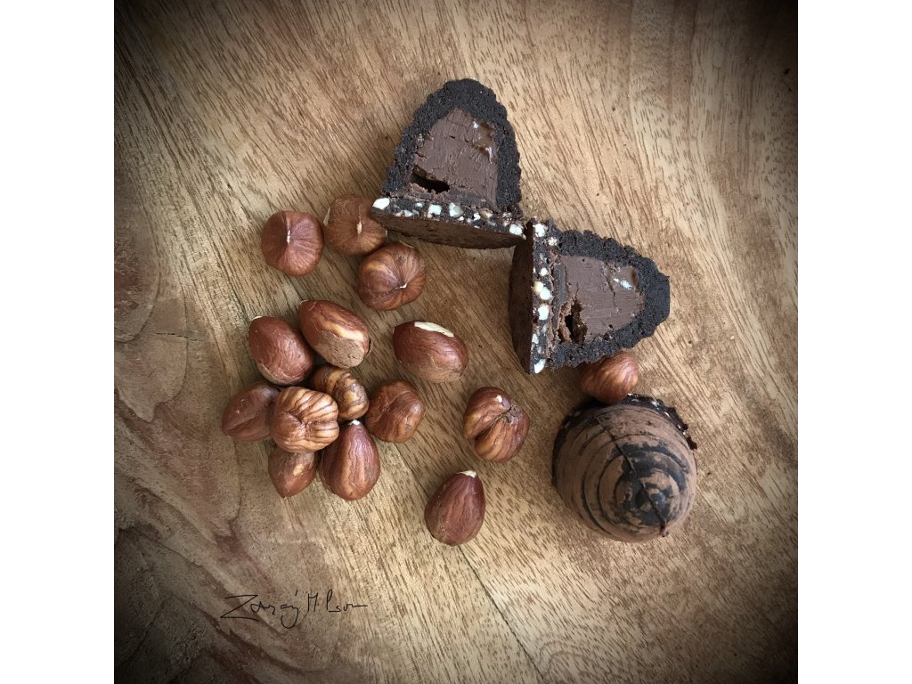 náplň: kakao, kakaové máslo, cukr, lískové ořechy, kešu ořechy, vanilka burbon