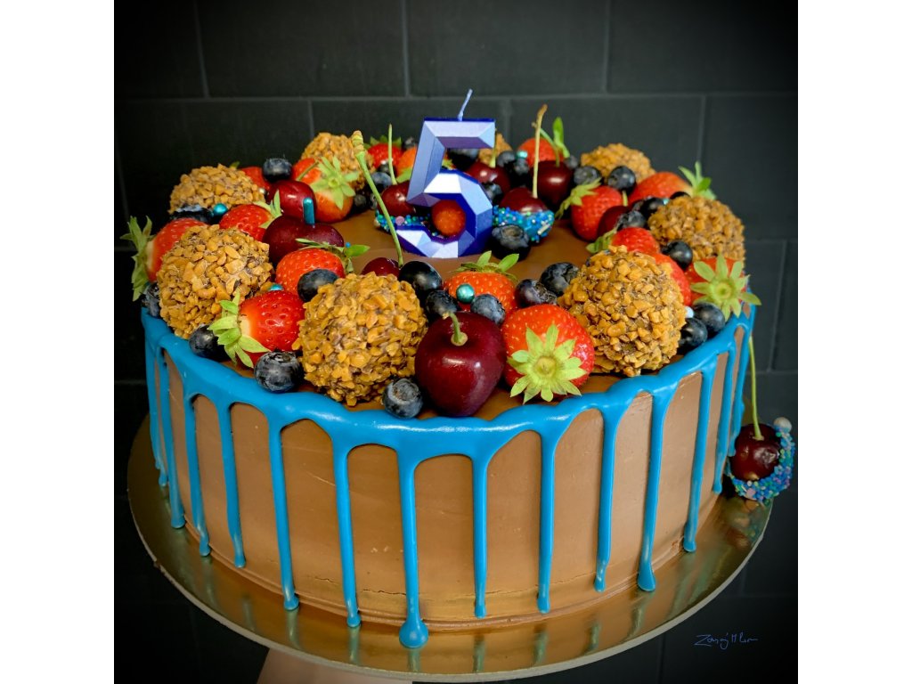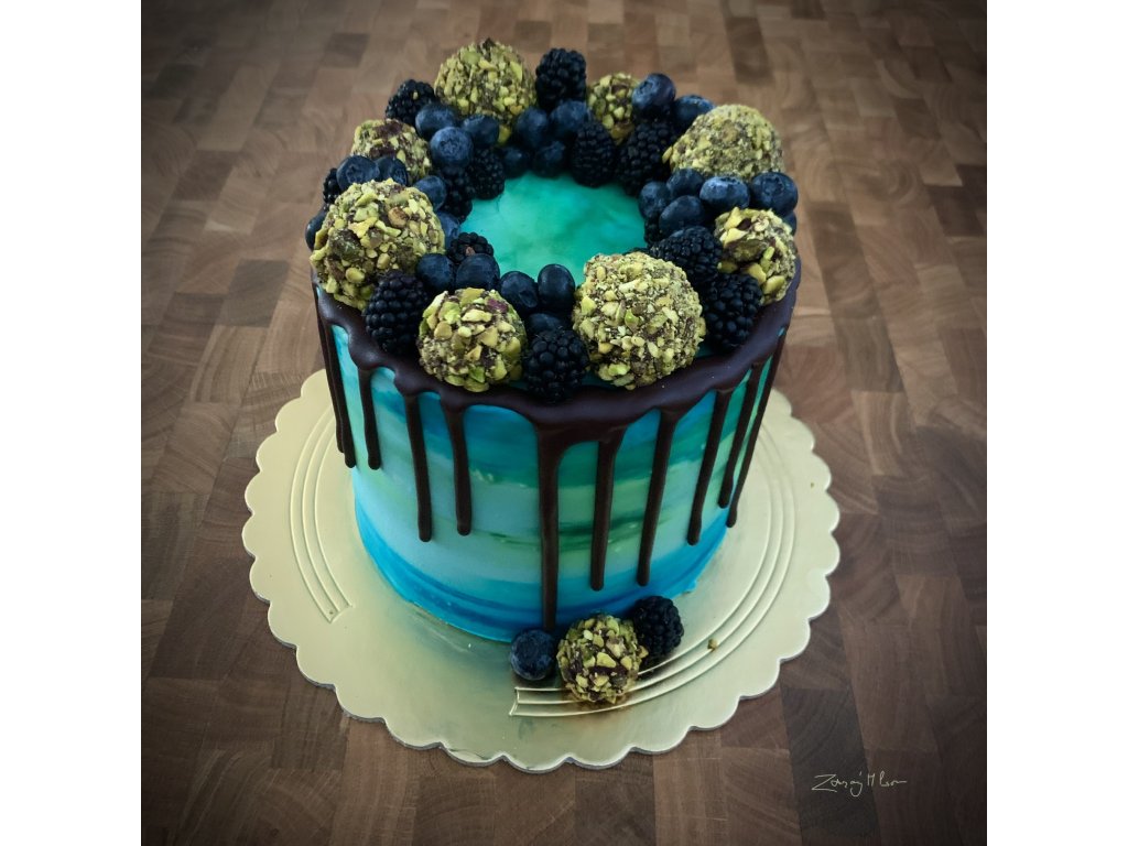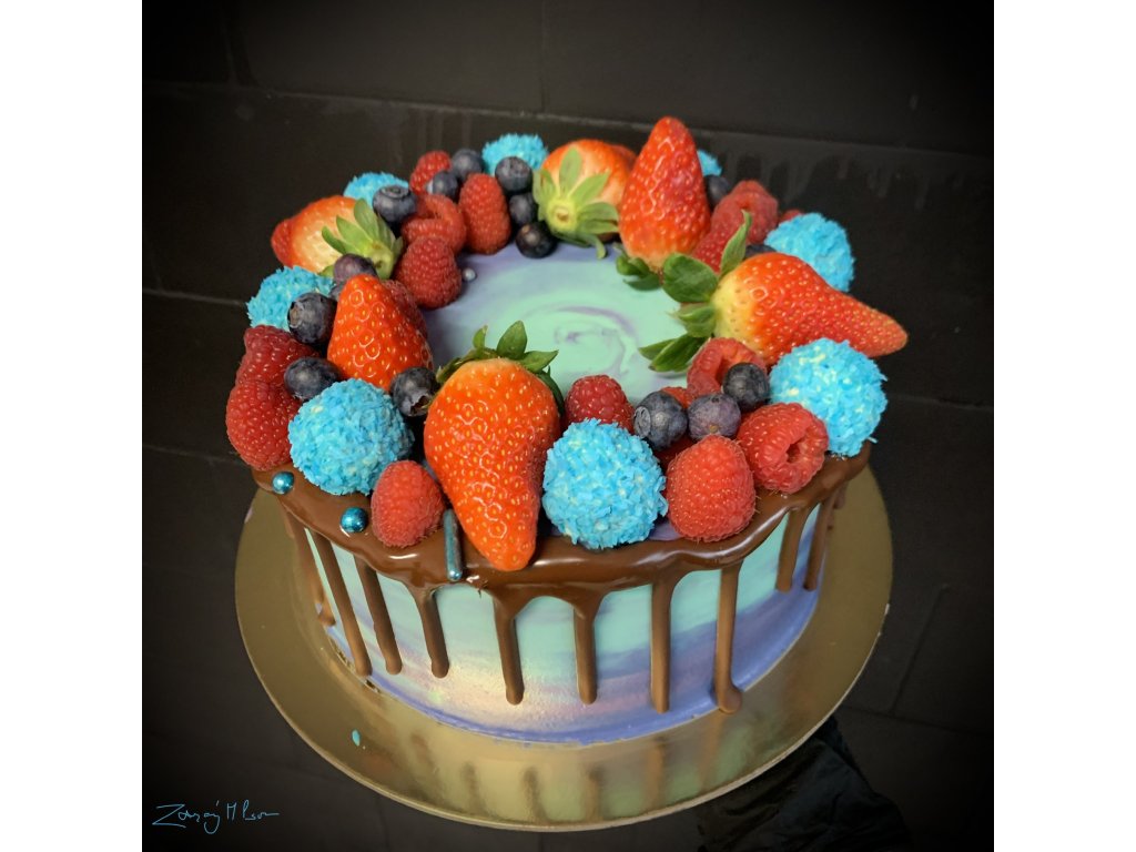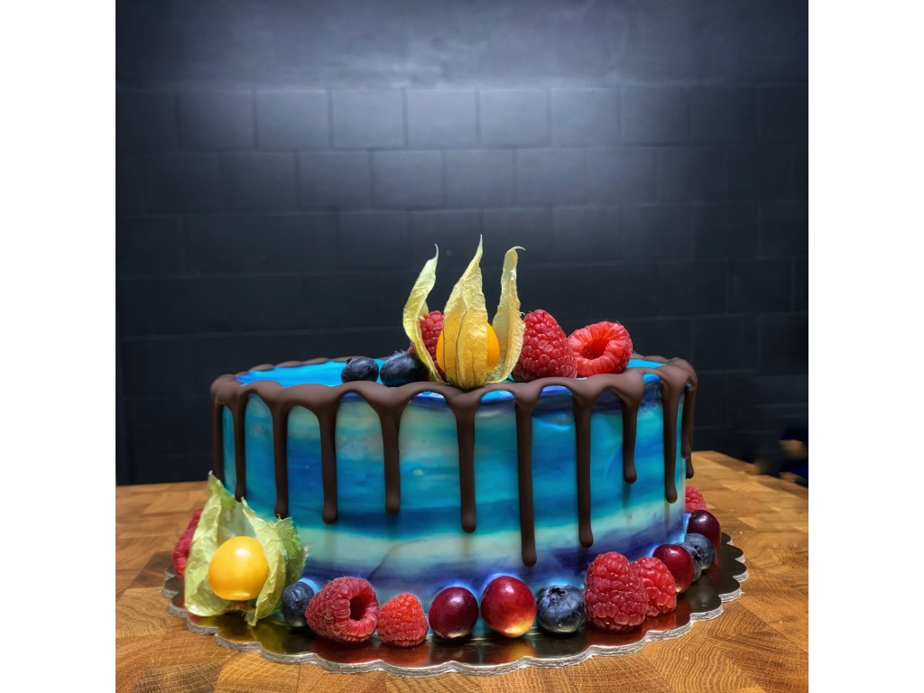 Rádi Vám nachystáme dortík laděný do modrých ( zelených) barev. Pokud si nezvolíte jinak, dortík je čokoládový a zdobení modrý obmaz a ovoce s prvky čokolády.