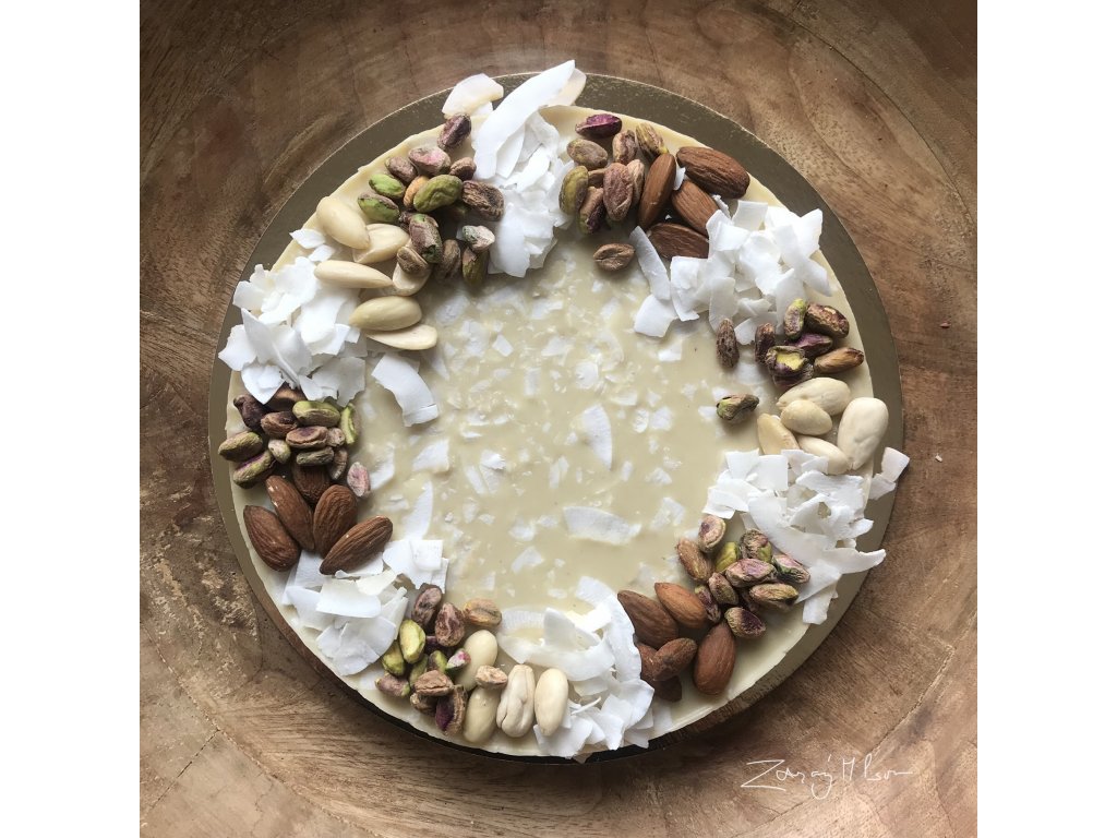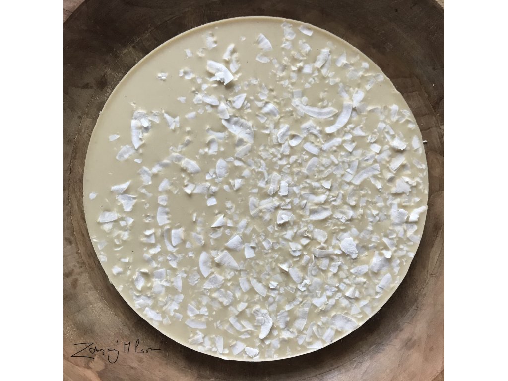 Krém: kešu máslo, kakaové máslo, čekankový sirup, Bio kokosové máslo, kokos, vanilka burbon, Flaw Drop vanilka